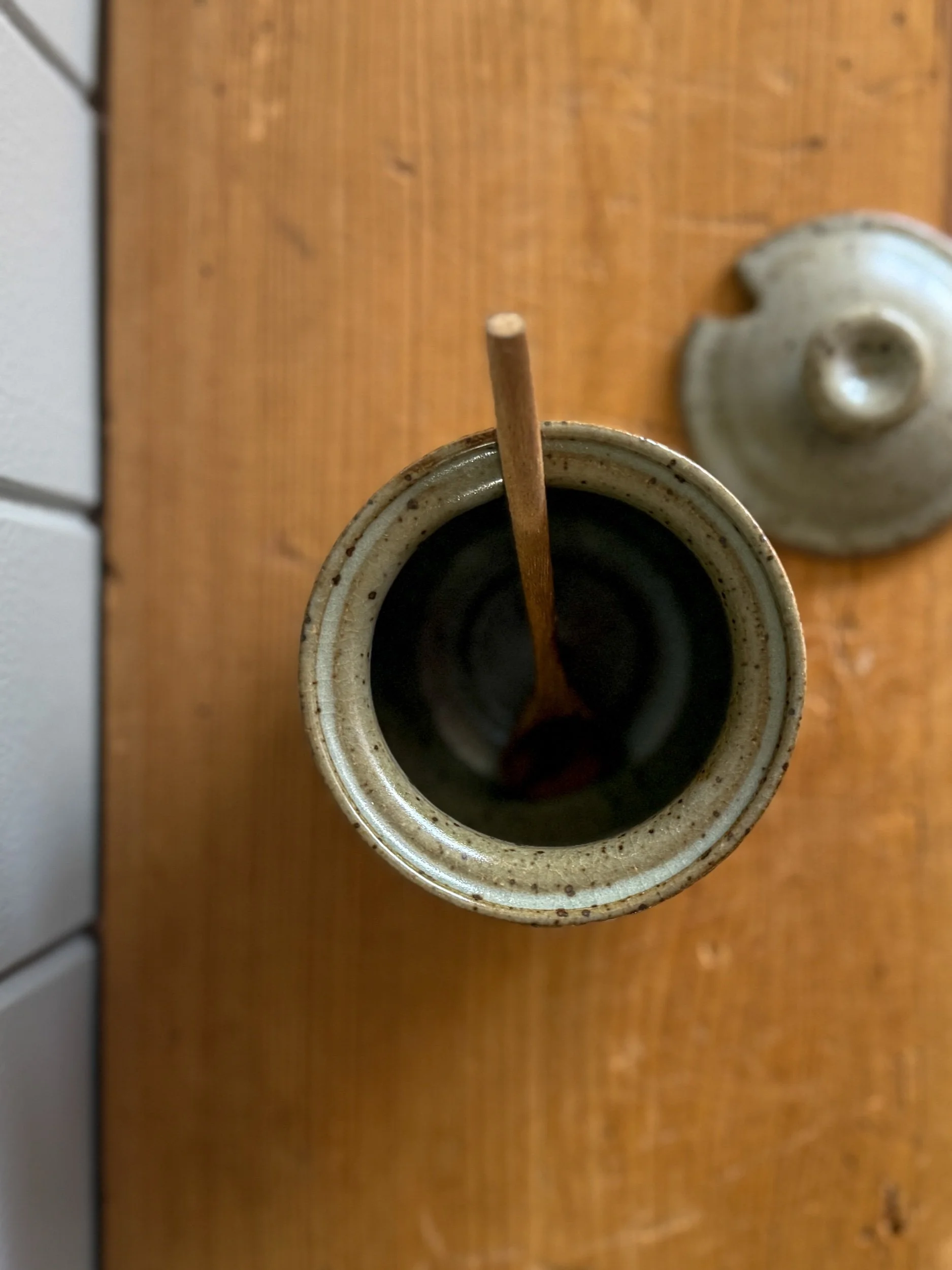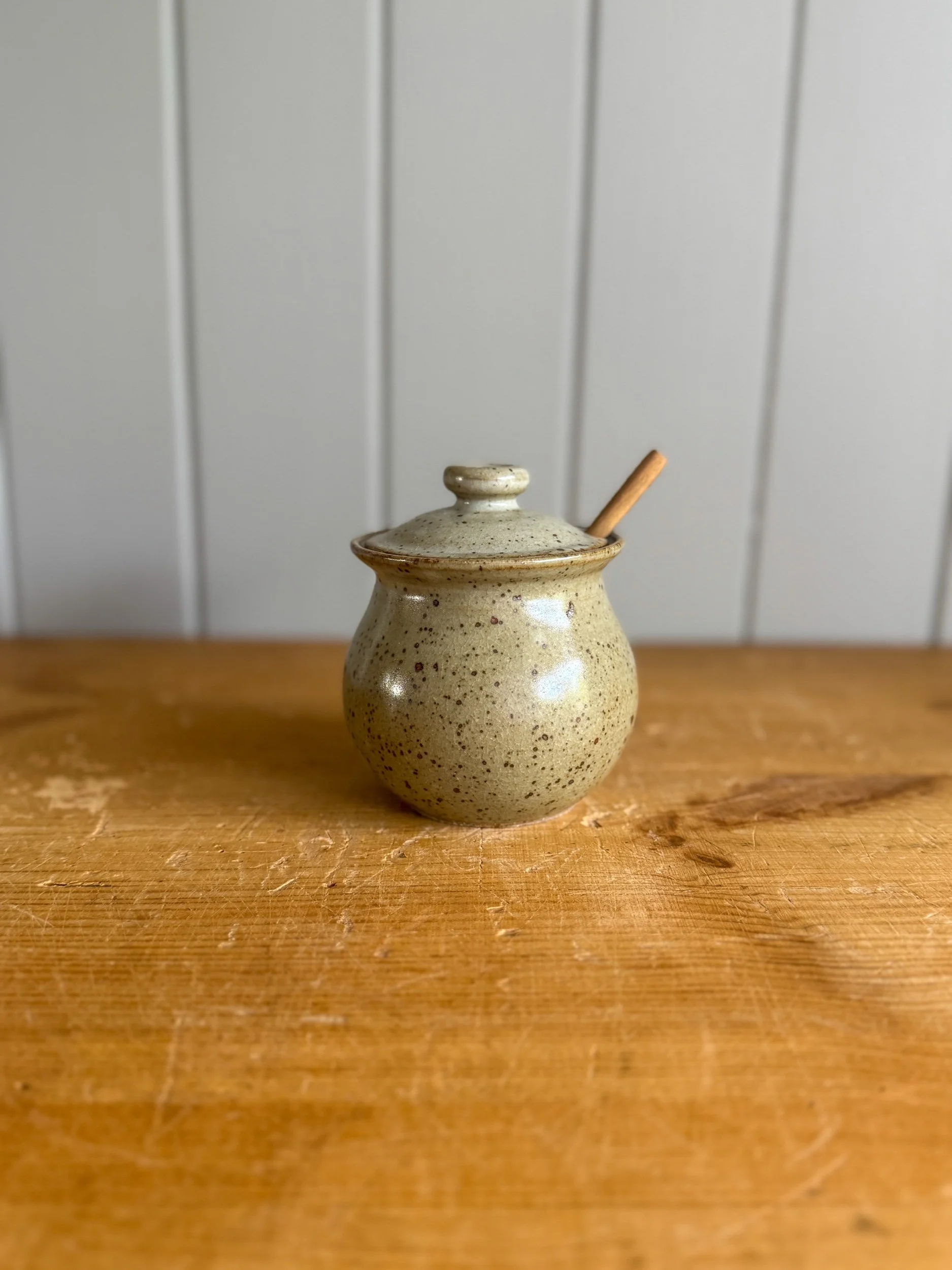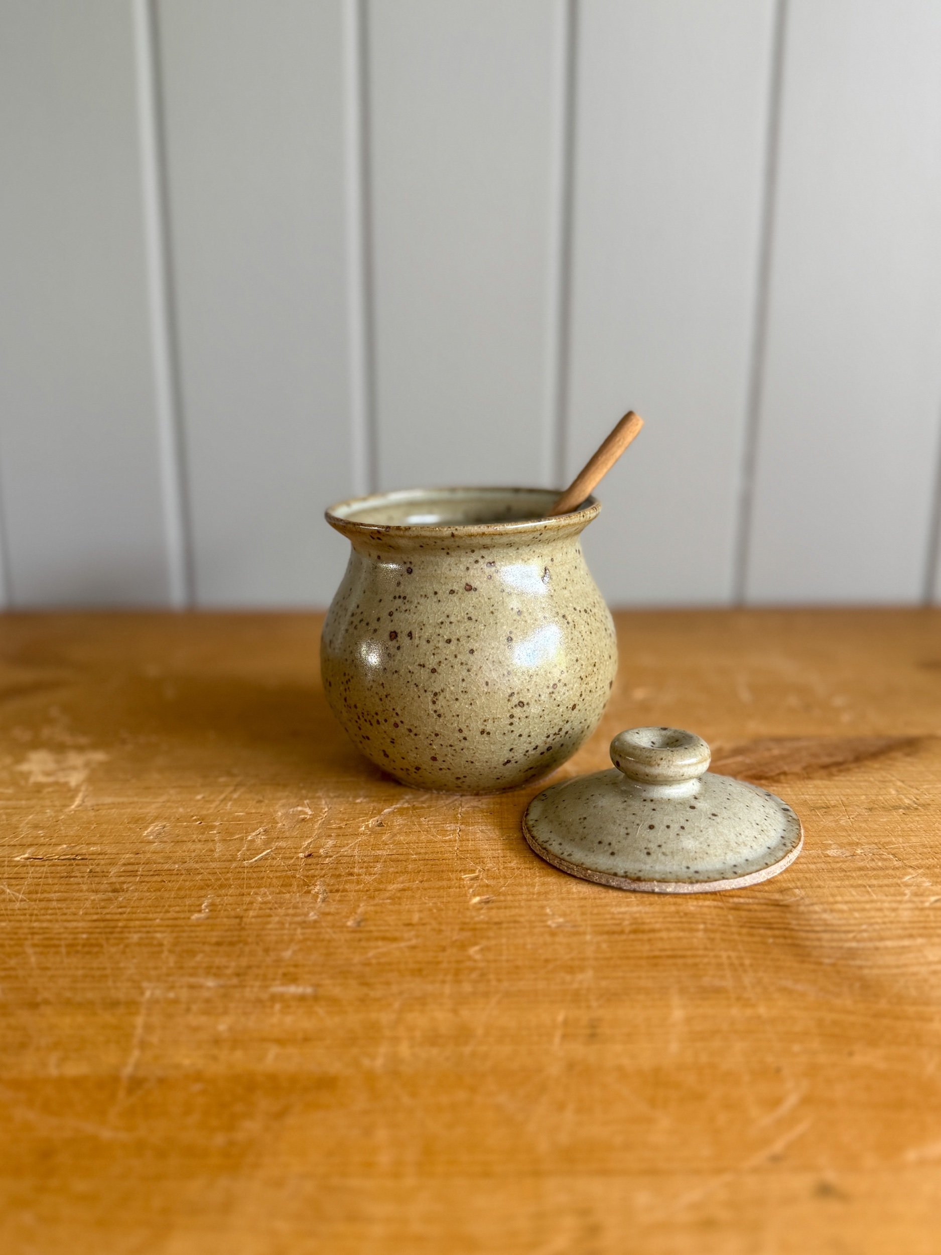 Petite Lidded Sugar Bowl with a smooth speckled glaze. This cutie matches our Set of 2 Piccolo Mugs but is just as lovely on her own. A sweet little accessory for your coffee station π€